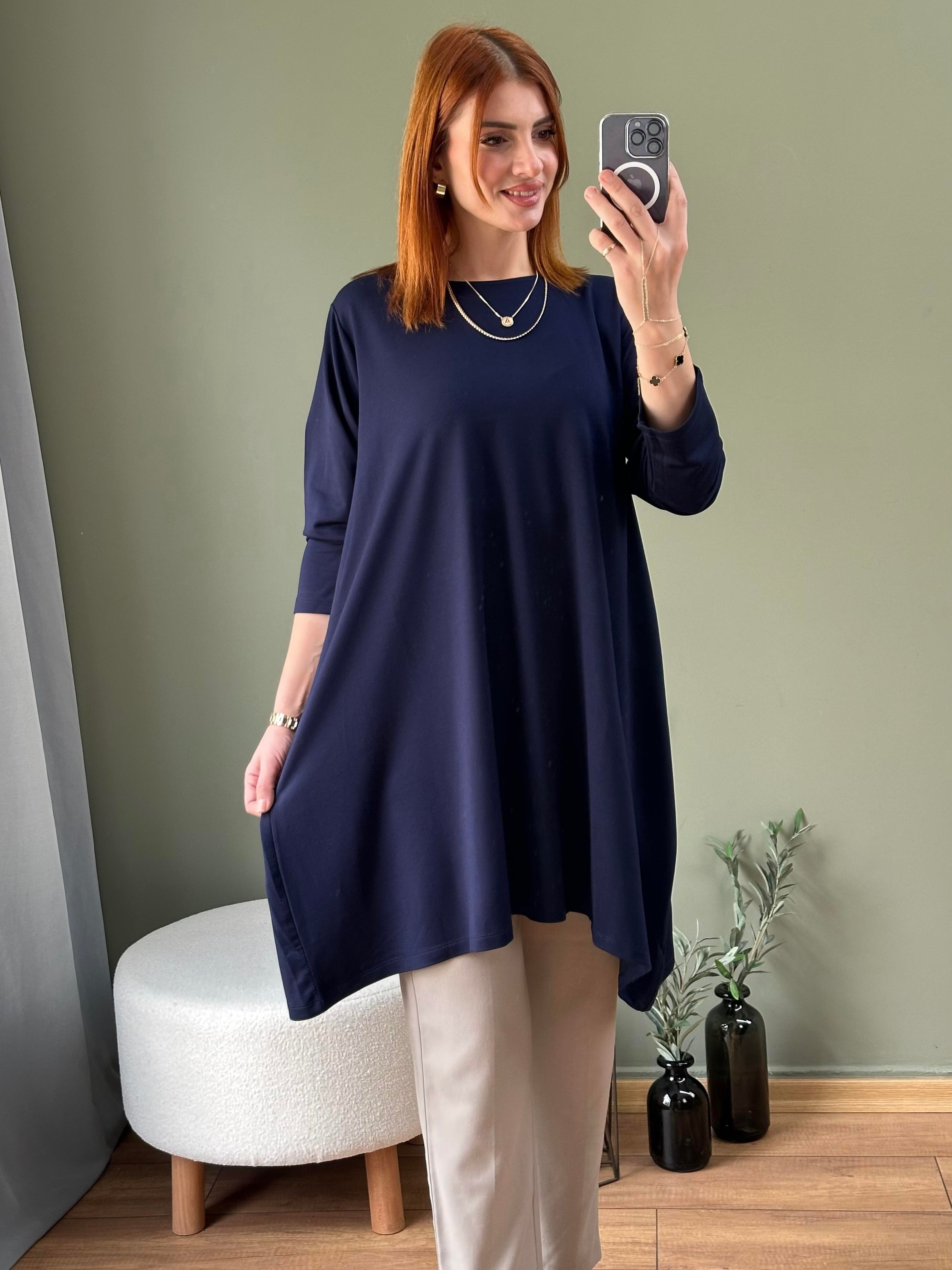 İKİ İPLİK PAMUKLU TUNİK LACİVERT