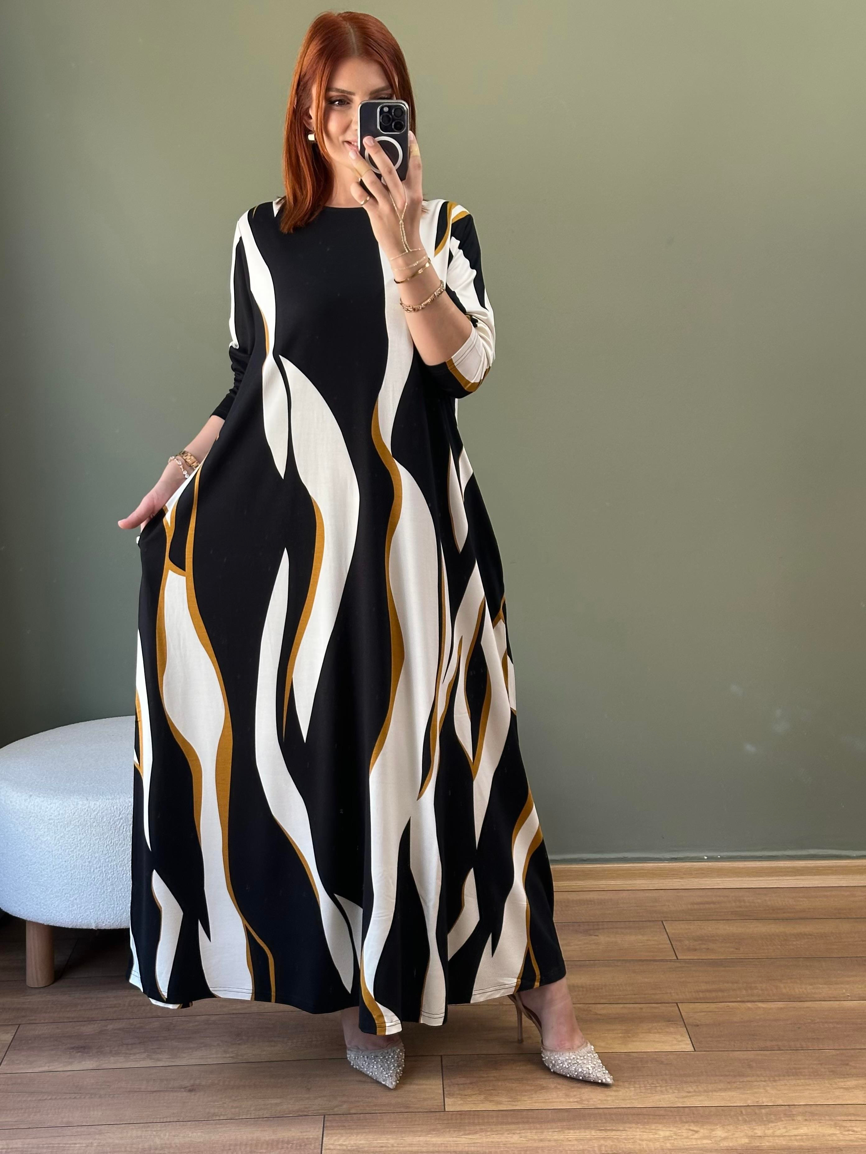Harika renkler, harika kumaş kalitesi tasarım elbise modelinde buluştu !!! Siyah, Lacivert renkler iki pilik kristal kumşatır. !!! Bordo,Kahve,Haki,Şal desen pamuk penye kumaştır. S Beden 36/42 M Beden 44/48 L Beden 50/54 XL Beden 56/60