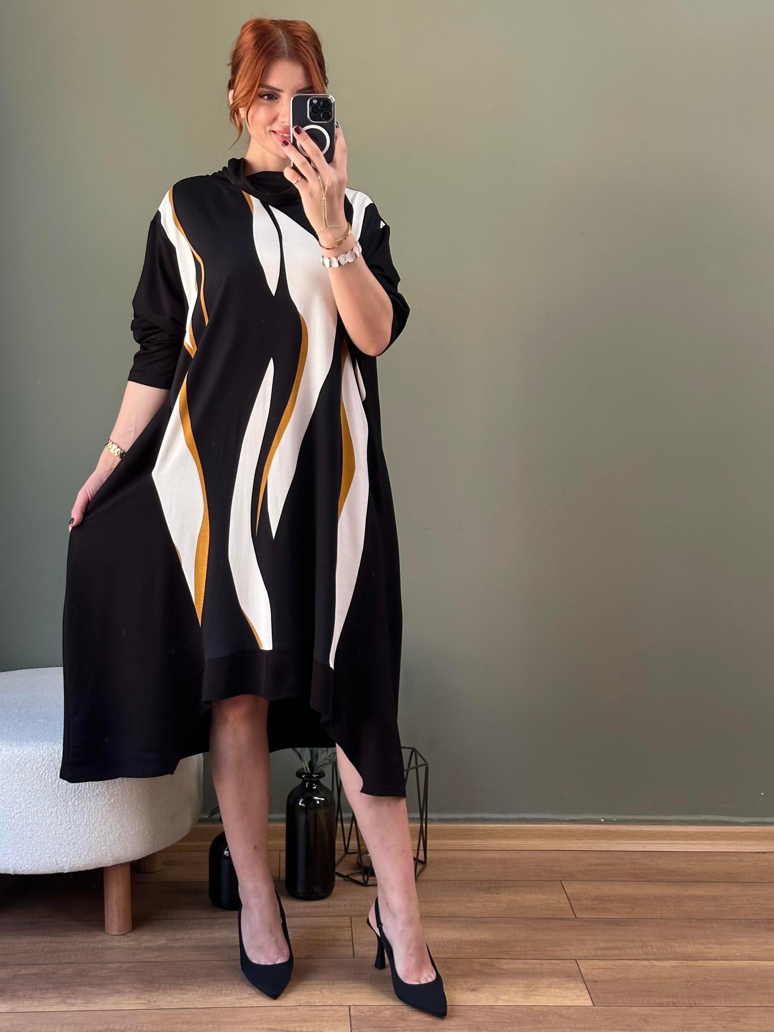 DEGAJE YAKA ASİMETRİK KESİM TUNİK EBRU DESEN (D822)