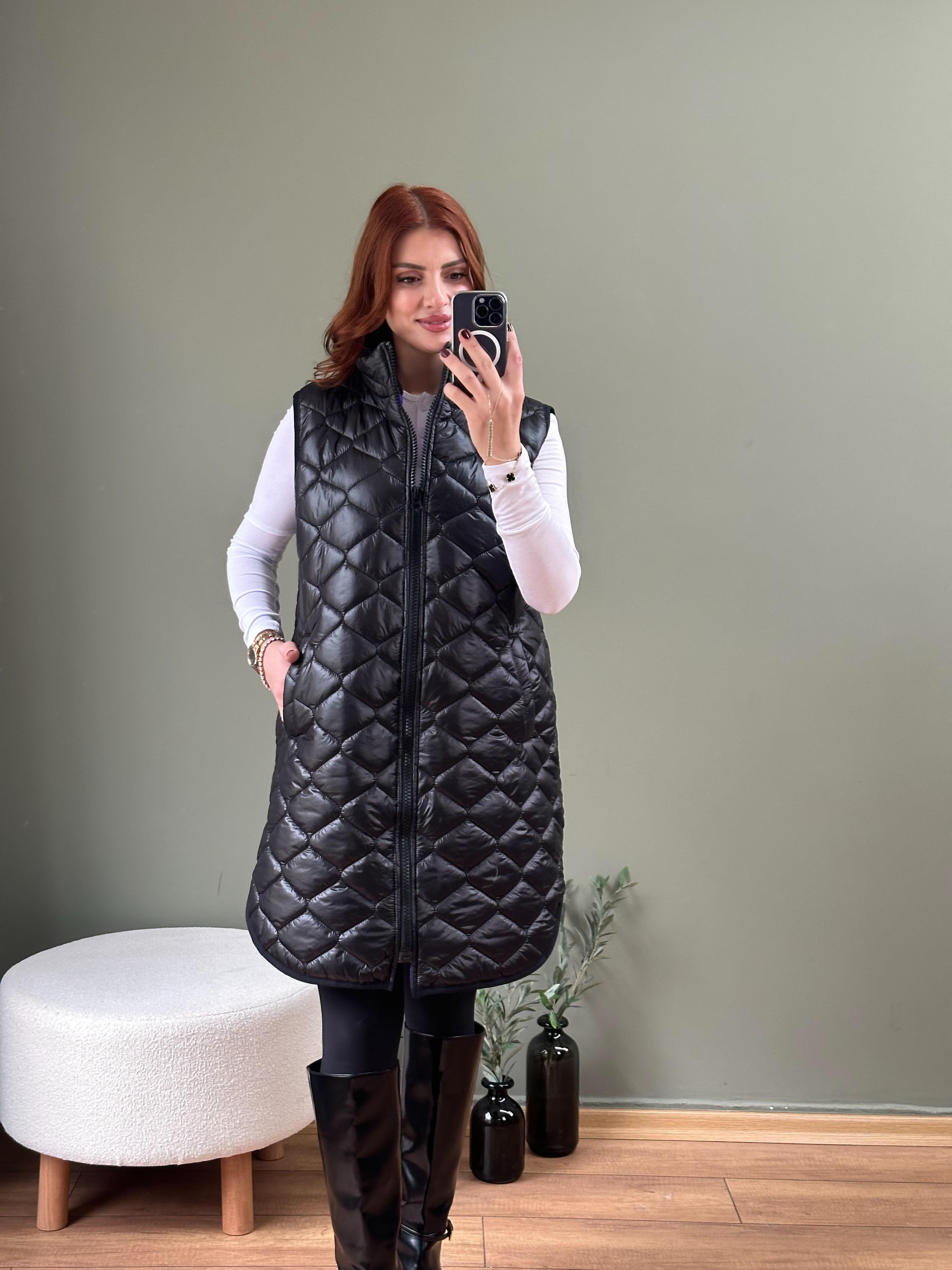 Fermuarlı kapitone mikro elyaf yelek siyah